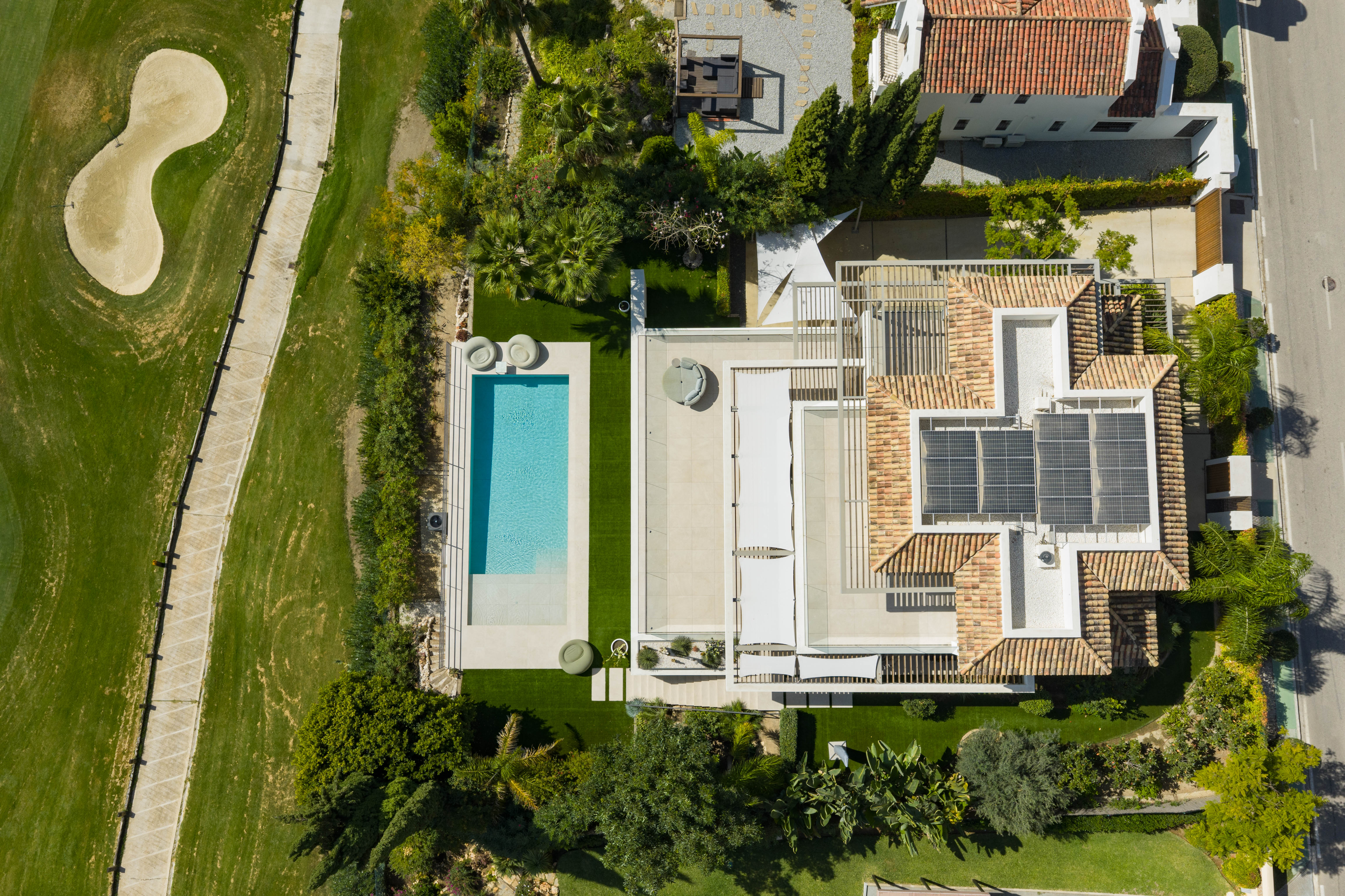 El resultado es una villa que combina lo mejor del estilo andaluz tradicional con el confort y la funcionalidad contemporáneos. Los amplios espacios de terraza se integran perfectamente con los interiores renovados, creando una experiencia de vida interior-exterior característica del estilo mediterráneo.